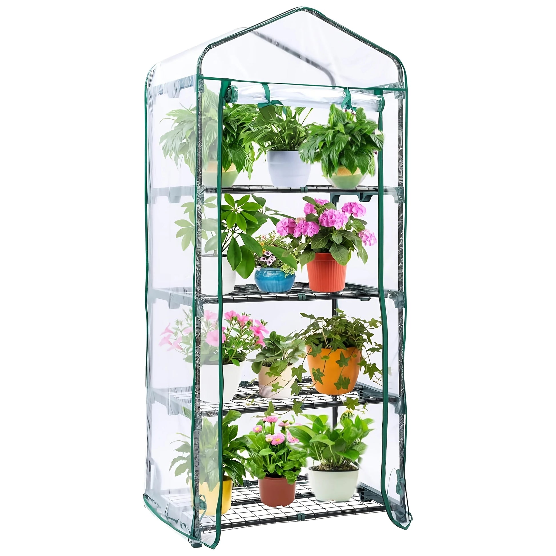 Hign-concerned 4 Tier Mini Greenhouse Portable Rust Frame