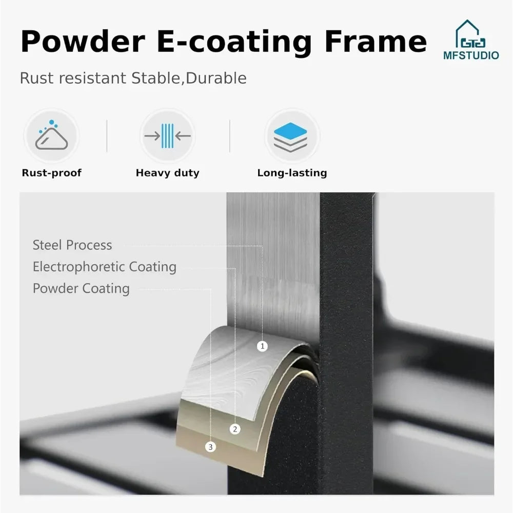 - All-weather, heavy-duty frame — black metal construction with E-coating for rust resistance in outdoor conditions.