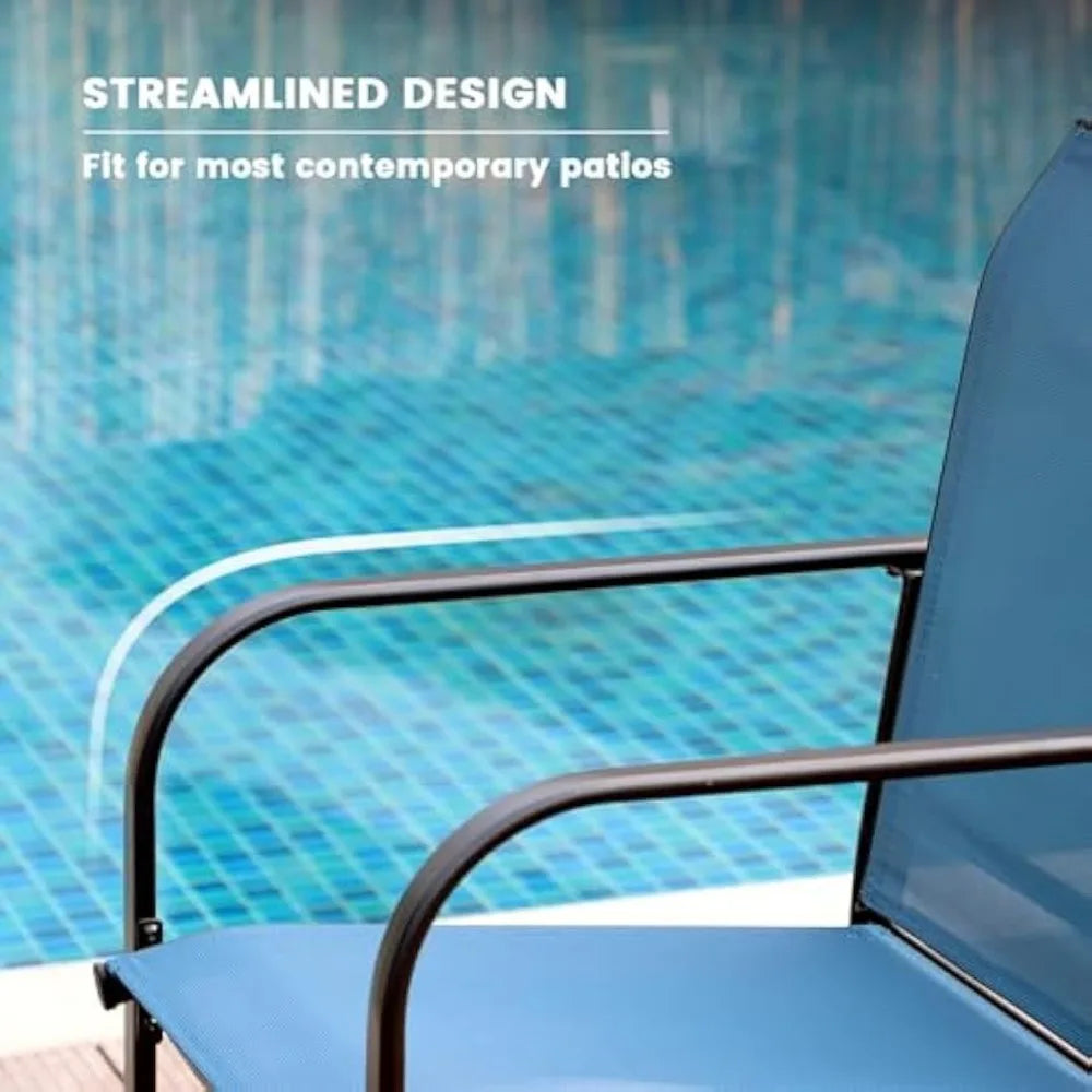 Meet the 7 Pieces Patio Dining Set, a practical outdoor dining solution designed for patios, decks, and gardens. This set includes 6 blue stackable chairs and a black rectangular metal table—built for durability and everyday outdoor use.