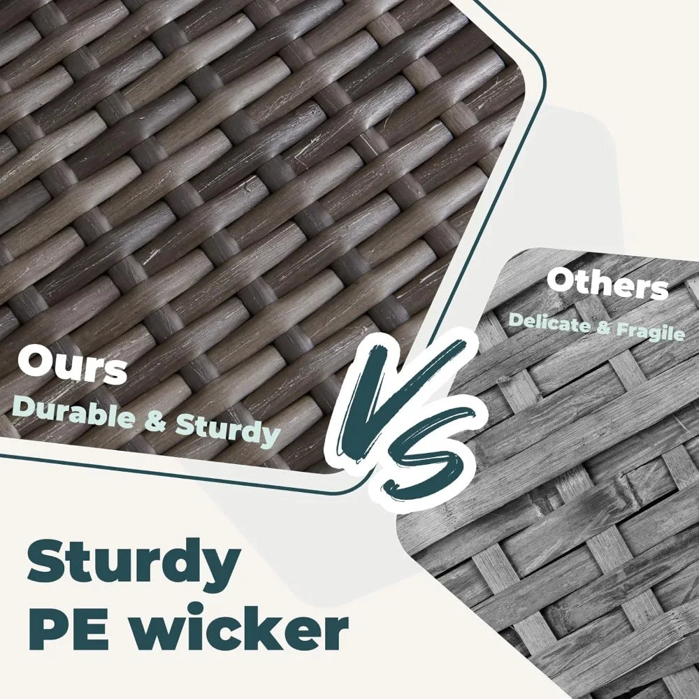 The combination of a weather-resistant HDPE table and wicker-wrapped seating delivers practical, low-maintenance use year after year. The three ottomans add flexible seating arrangements for guests or serve as footrests for added comfort, making it easy to adapt your space for dining, lounging, or casual gatherings on the garden, deck, or patio.
