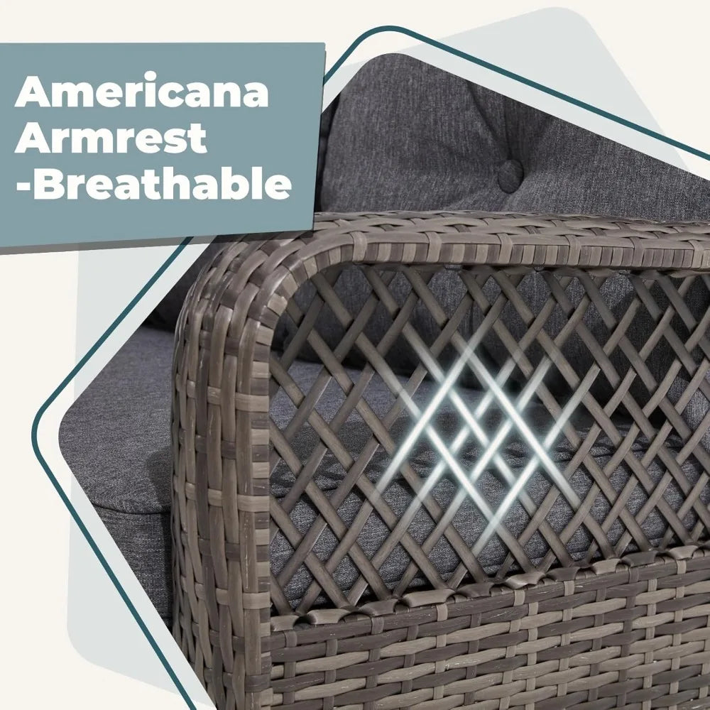 - Wicker seating with alloy steel frames for durability and sturdy support