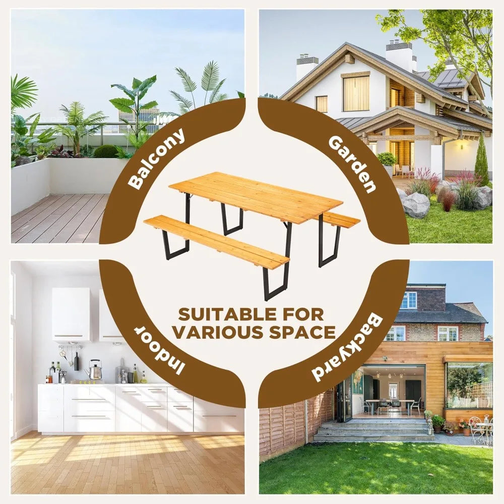 Enjoy spacious outdoor dining with a single, integrated setup that seats family and friends comfortably. The 70" wood picnic table is perfect for meals, gatherings, and even casual beer moments in the garden, blending practicality with timeless style.