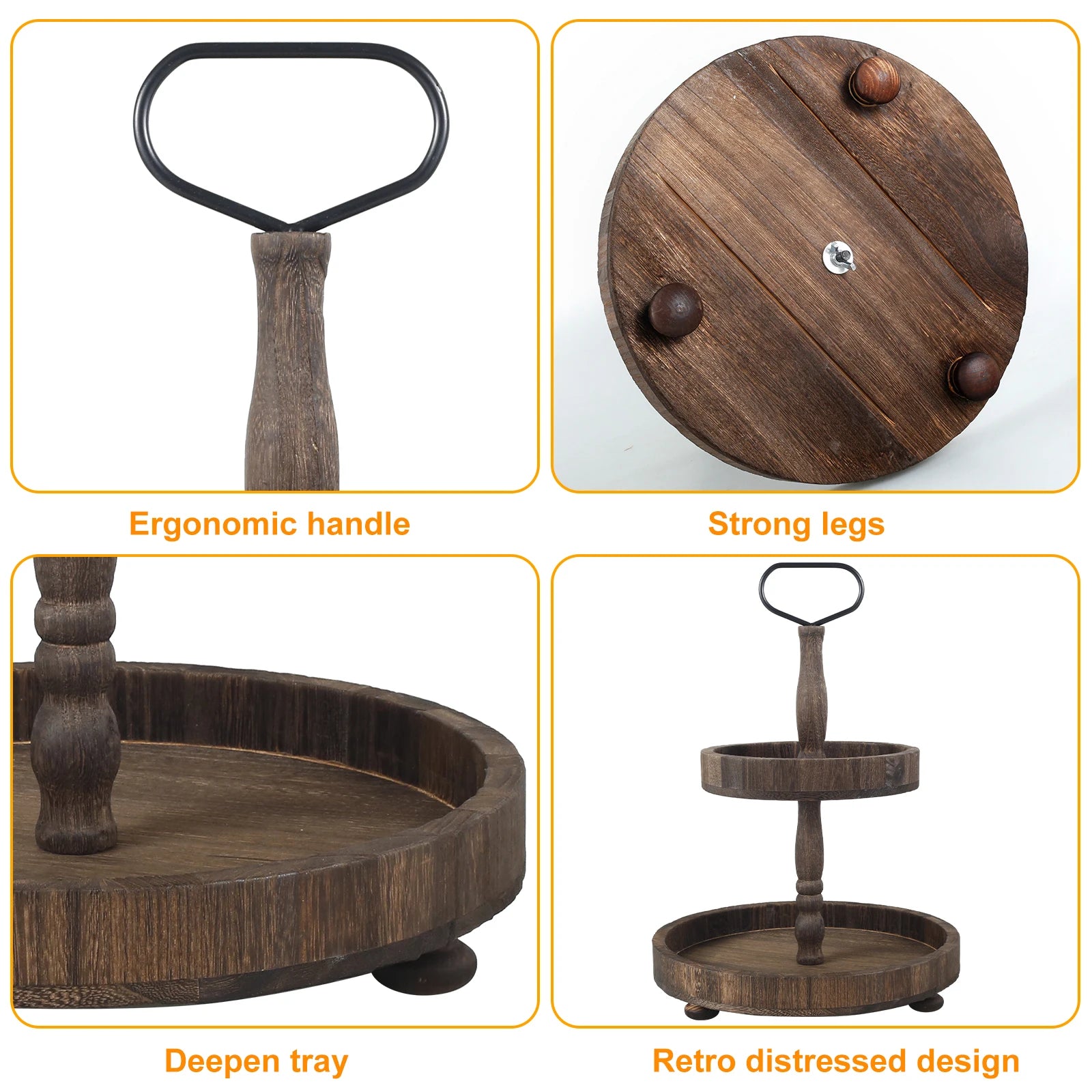 Choice 2 Tier Wood Tiered Tray Detachable Fall Farmhouse