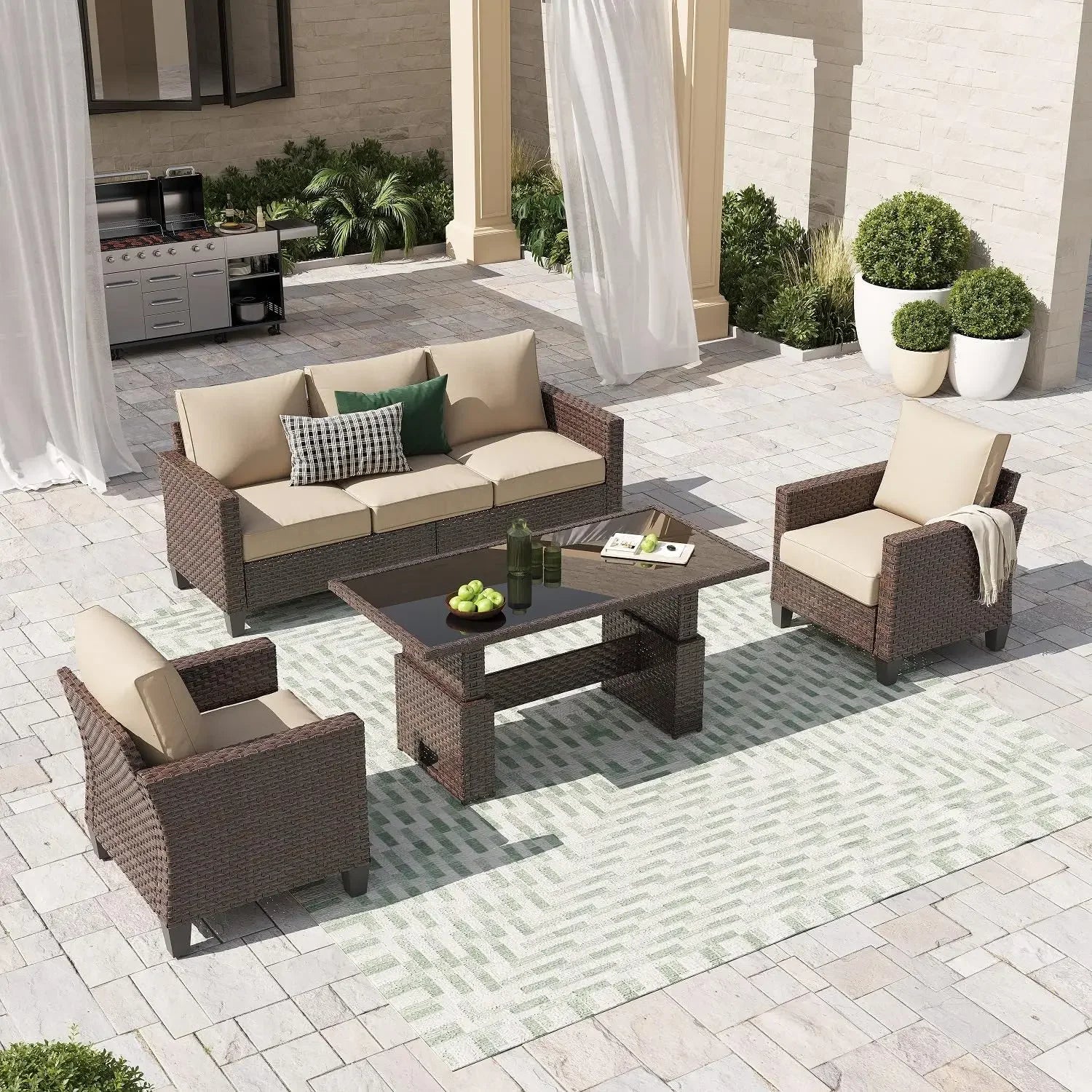 GUANGBAI Outdoor Patio Set 4 Piece Wicker With Lift