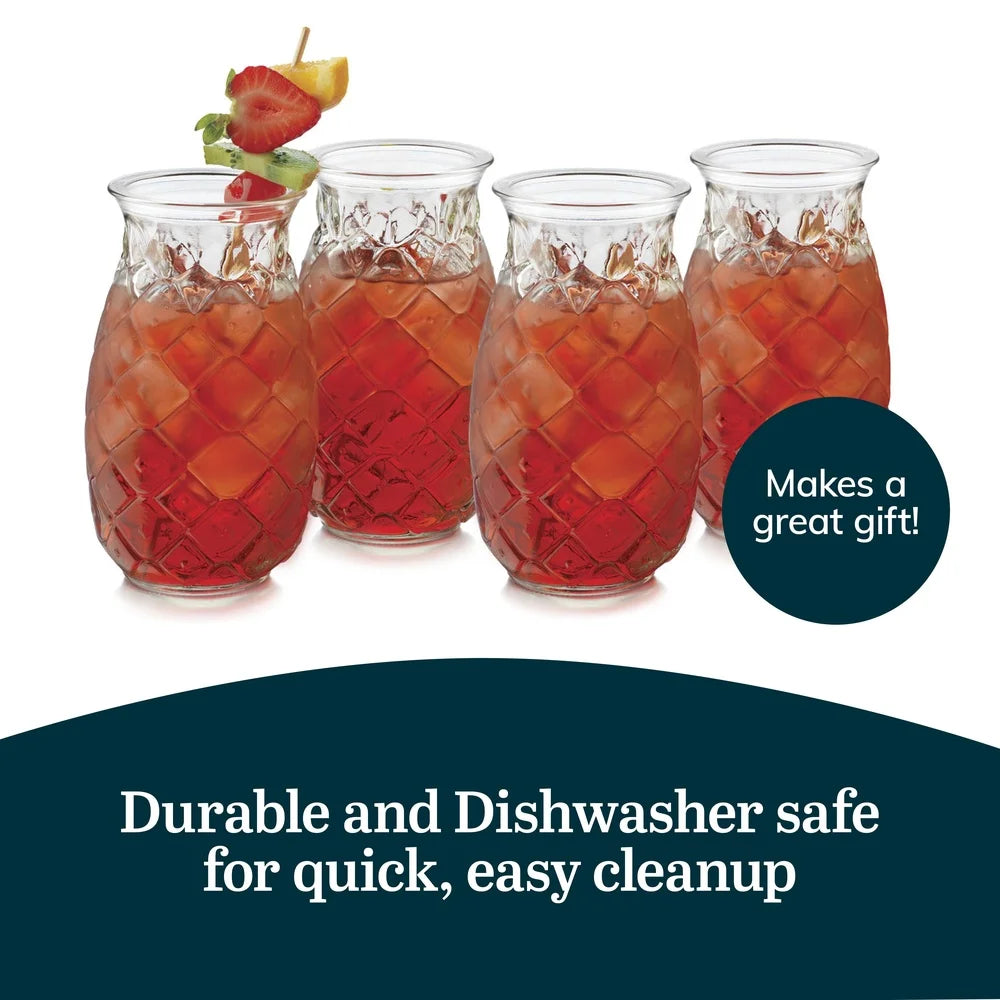 XMSJ Pineapple Tiki Glasses 4 Lead Free Eco Party Sets