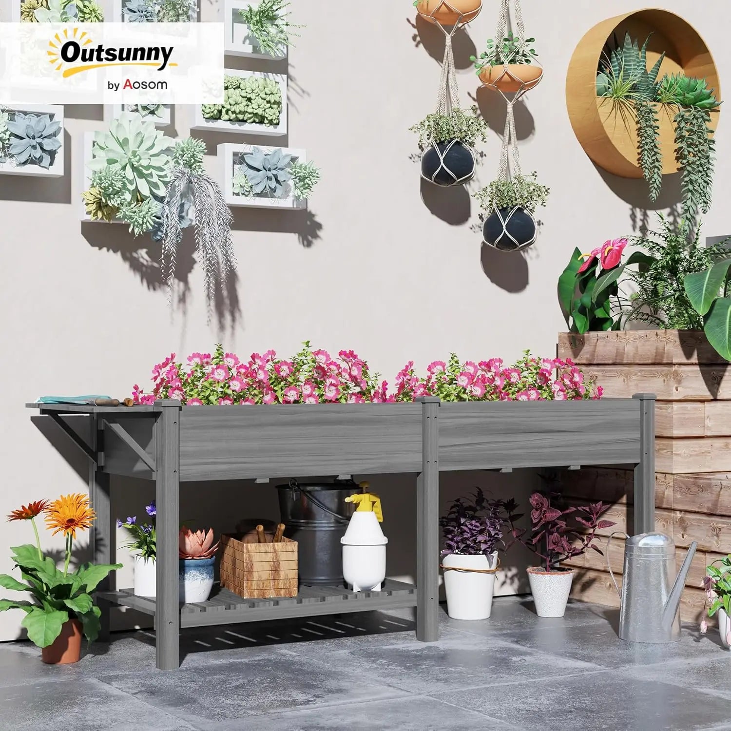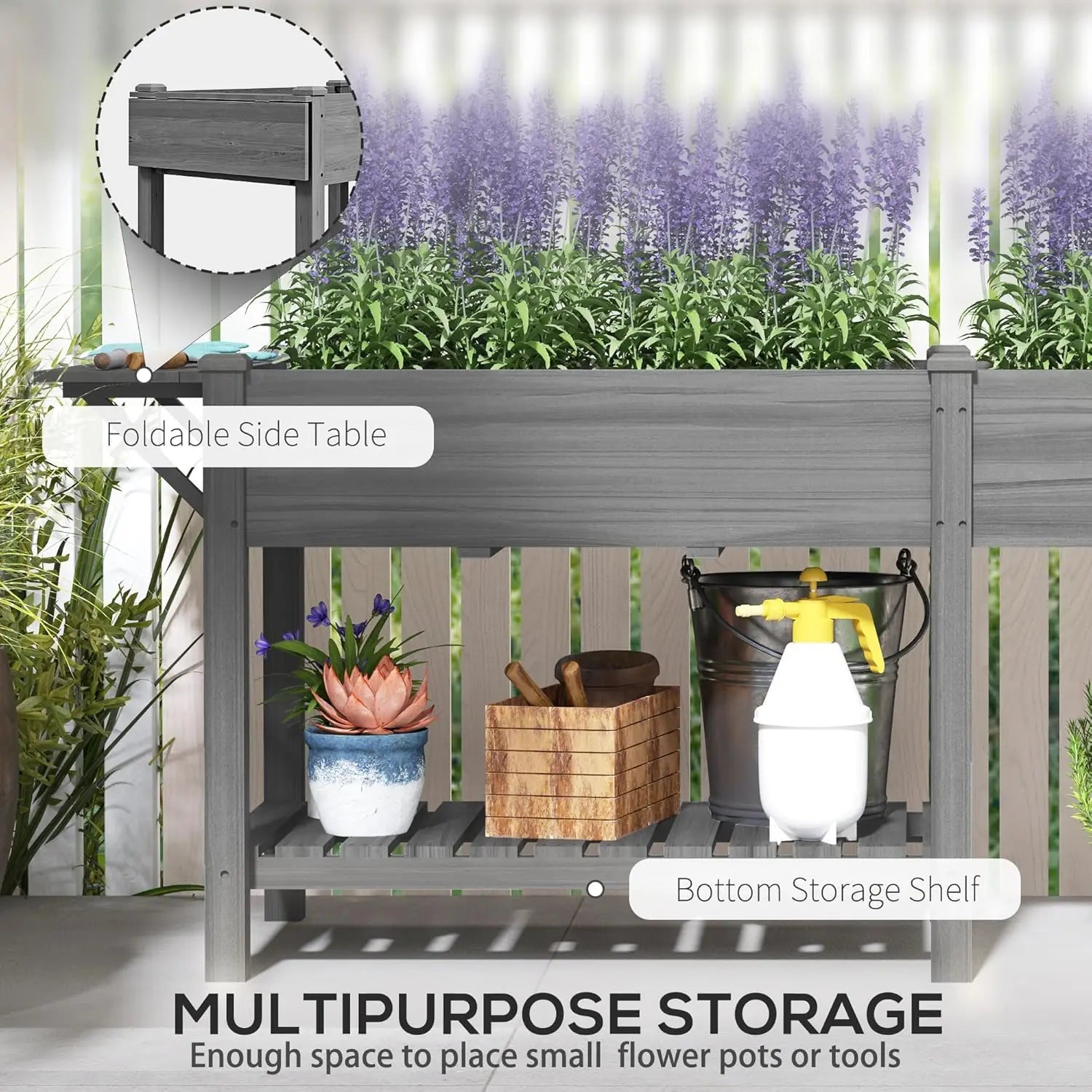 The built-in side table and bottom shelf help you stay organized—store soil, pots, and everyday tools close at hand so you can focus on growing.
