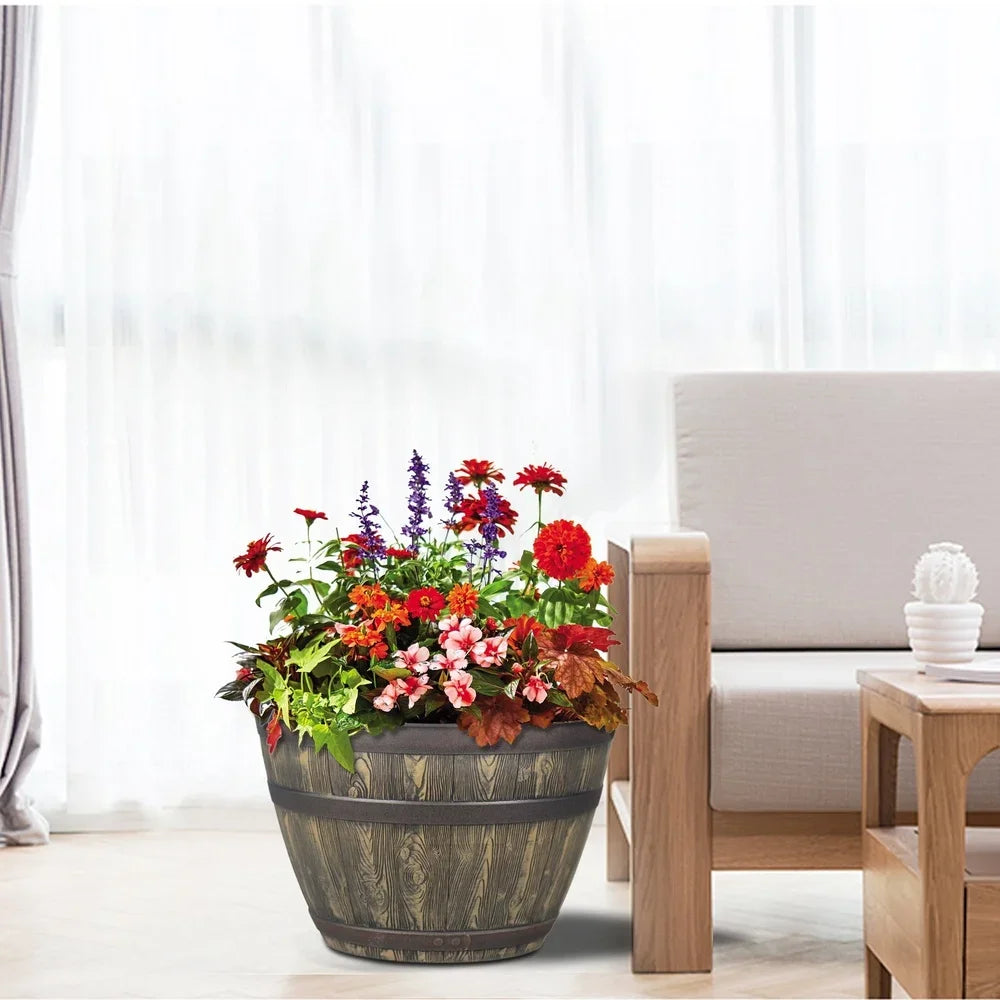 Elevate your greenery with a rustic, wine-cask planter that blends classic charm with modern durability.